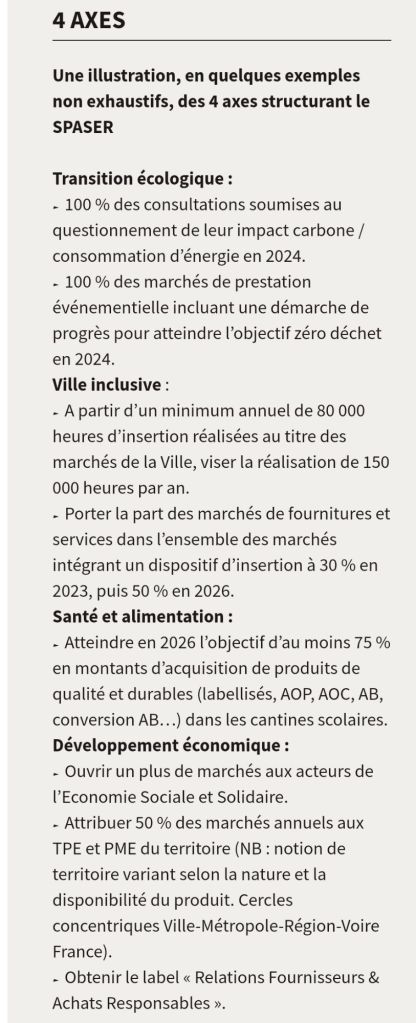 - L’objectif est de vérifier que les critères du SPASER (Schéma de promotion des achats socialement et environnementalement responsables) sont bien pris en compte dans les procédures d’achat public.