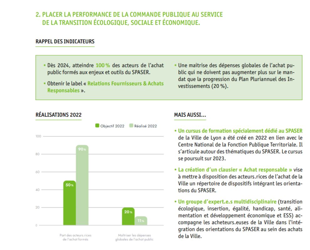 - Contrôler la ppart des dépenses liées aux achats responsables pour s’assurer qu’elles restent dans les objectifs du SPASER.